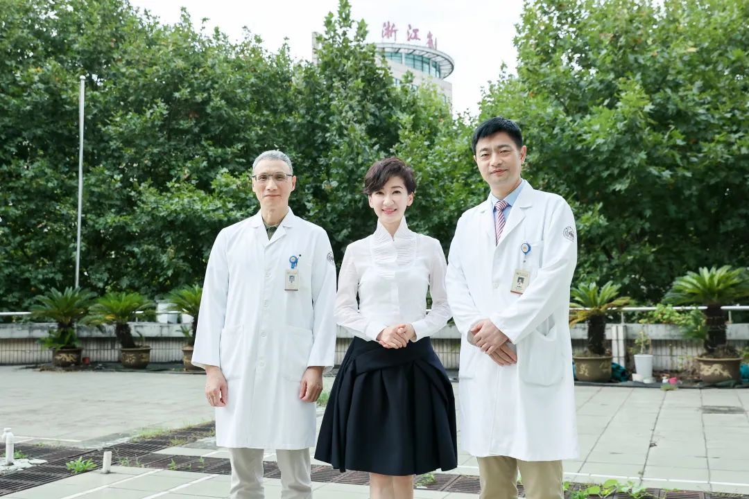 浙江省中医院肝胆胰外科外科主任李宁(左)、长根堂集团董事长王琼(中)、浙江省中医院院长助理、泌尿外科主任金晓东(右)
